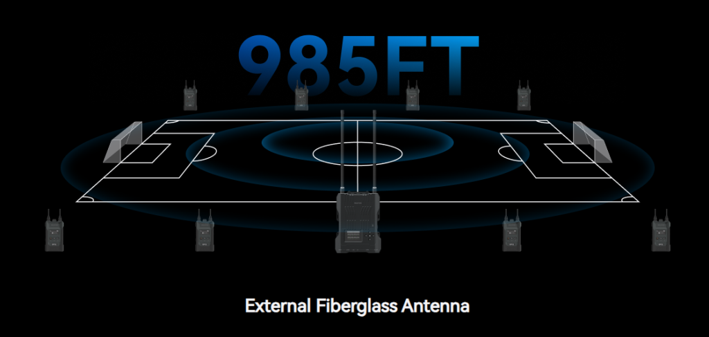 G51は1台のベースステーションで最大8台までのベルトパックを接続でき、ベースステーションは最大4台までカスケードが可能ですので、最大32台の通信を可能にしております。