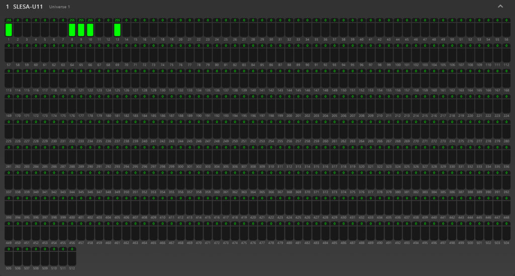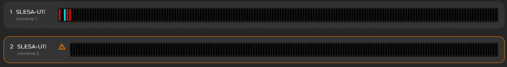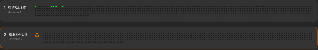 DMXが各ユニバースに流れていると、右側の②にDMX信号が表記されます!