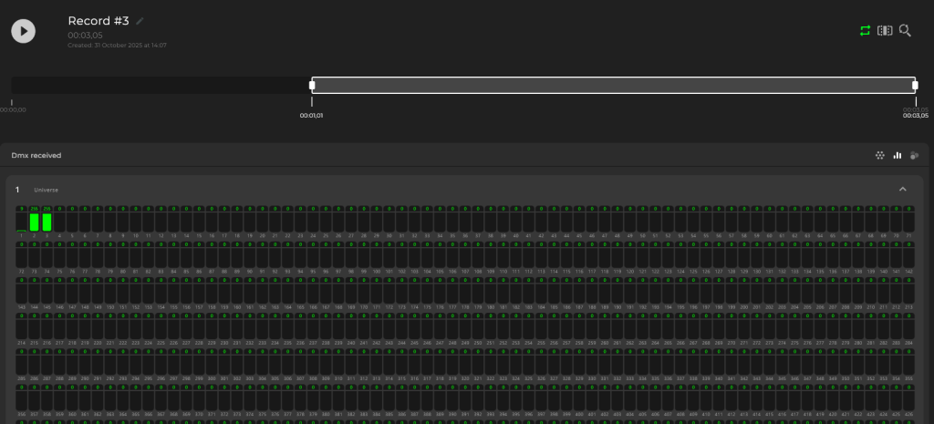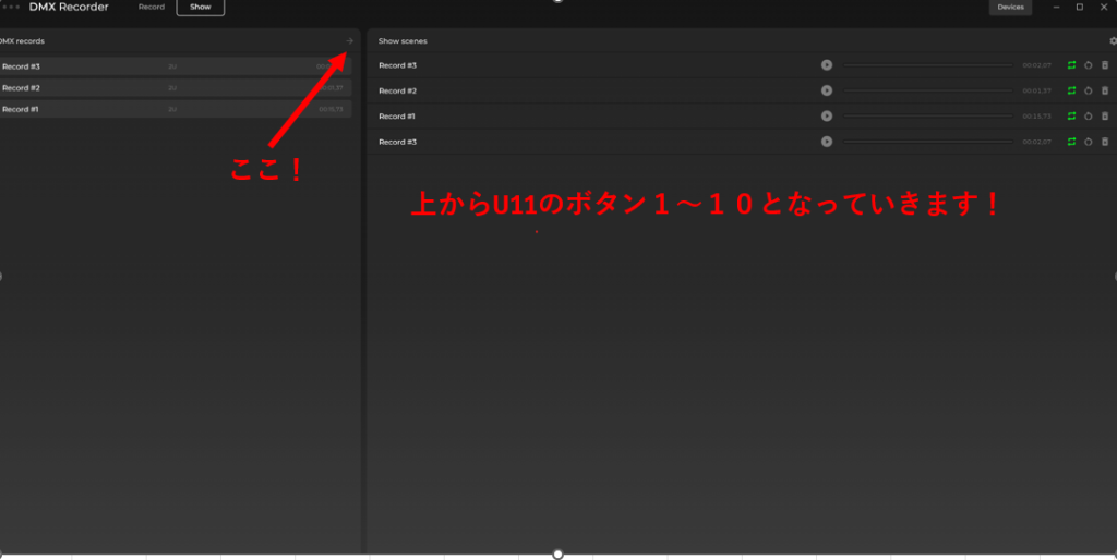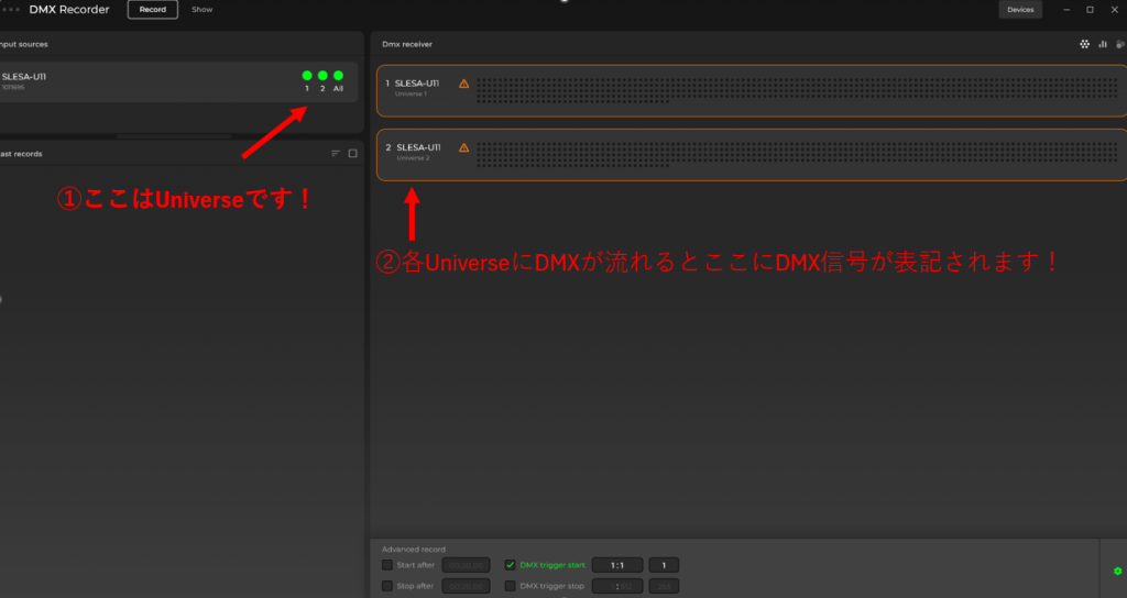 こちらも言葉の通り!画像では1Universeのアドレス1が1になるとRecordがスタートします!