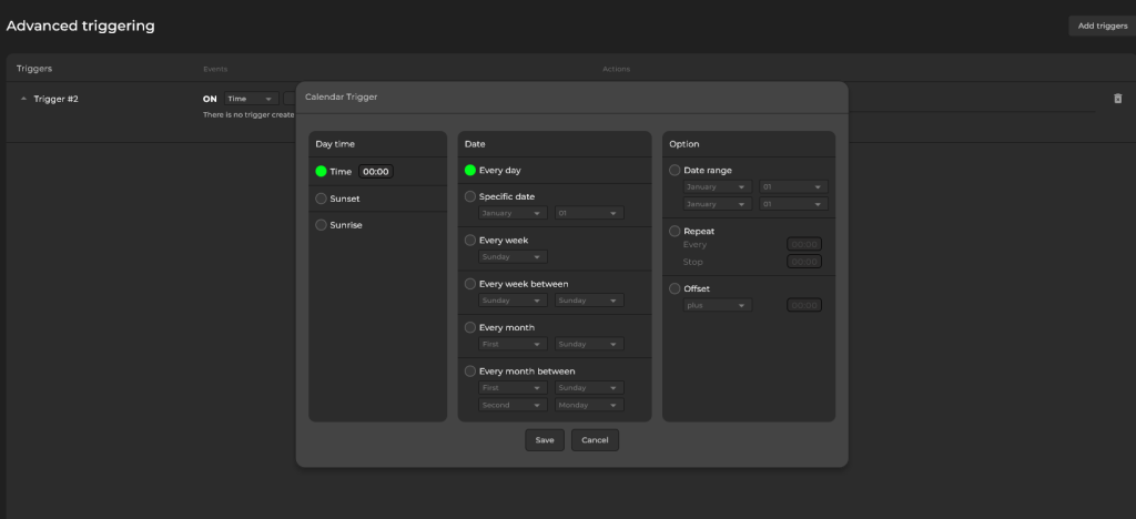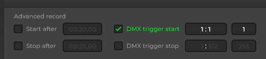 言葉の通りですね!指定した時間が過ぎたら、DMXrecordが始まったり、止まったりします!