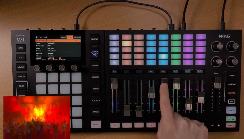 マッピングモードでがフェーダーやボタンに任意の機能やDMXチャンネルを自由に割り当てられます。