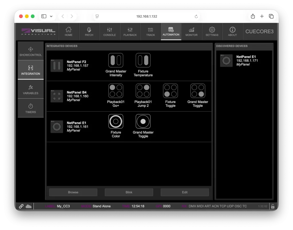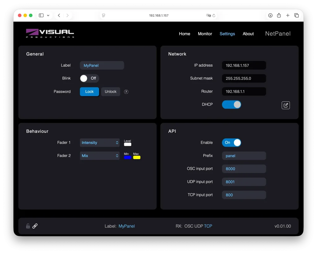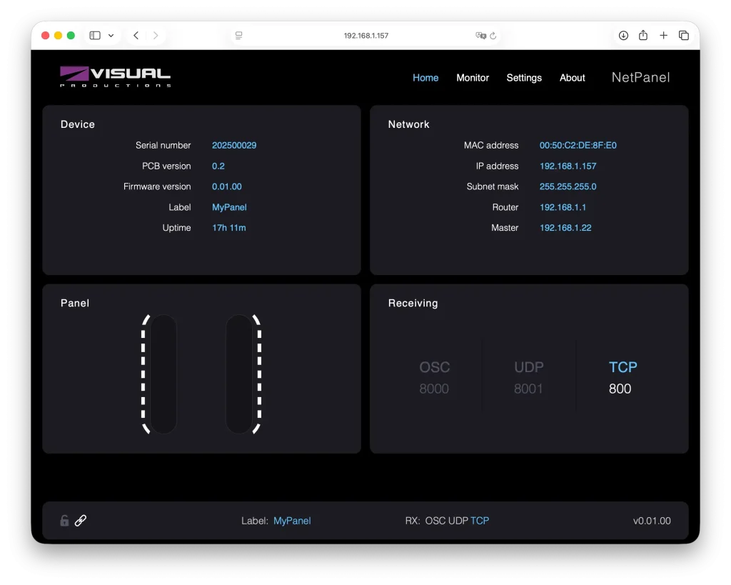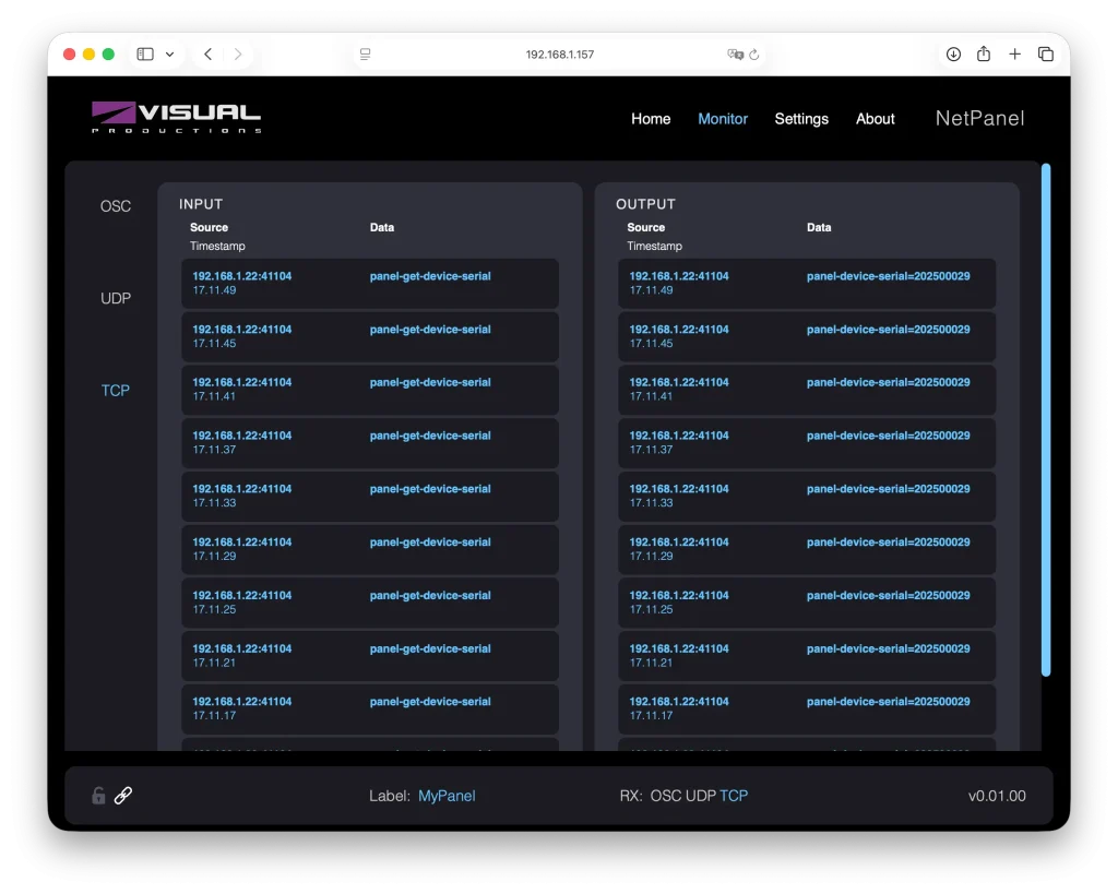 NetPanelには、ブラウザベースの直感的な設定インターフェースで、他のVISUAL PRODUCTIONSの製品と同様に、モニター画面でデバイスがネットワーク上で送受信している内容をリアルタイムで把握できます。